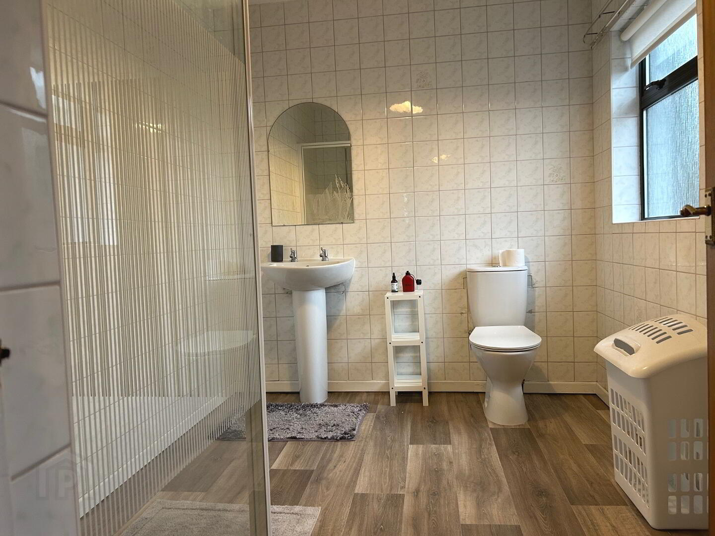 Shower Room - (2.86m x 2.27m) lino flooring, W.C., W.H.B., shower, tiled walls