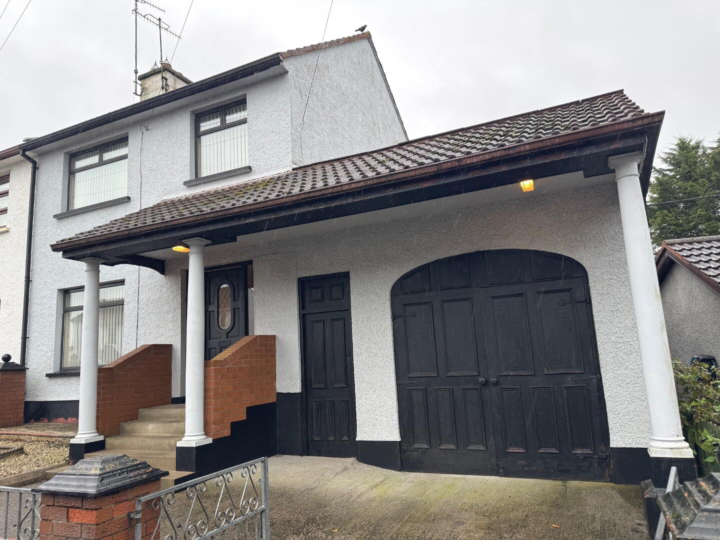 Double glazed windows throughout, carport and garage, lawn and paved rear area, oil fired central heating boiler house with W.C. Front of property enclosed with double galvanised gates and feature brick wall, double wooden doors to carport and garage.